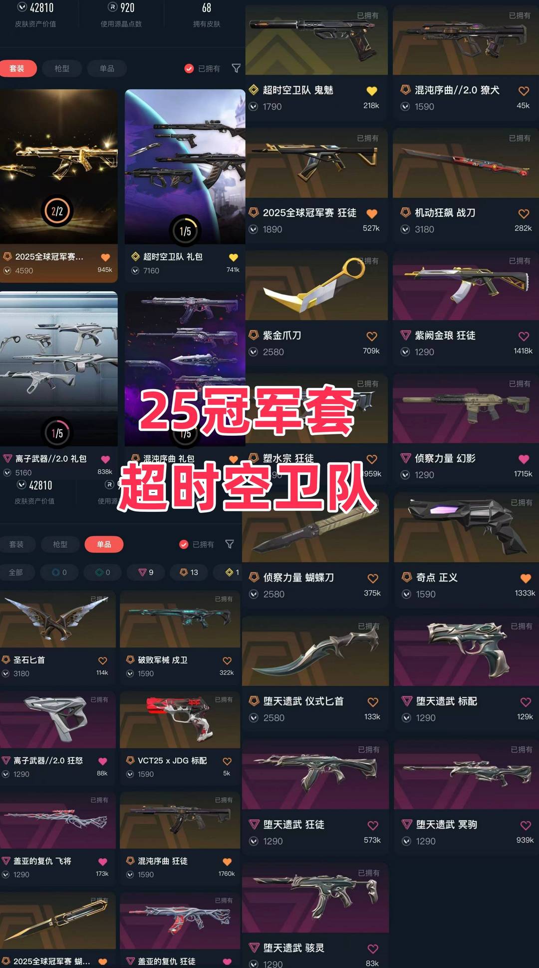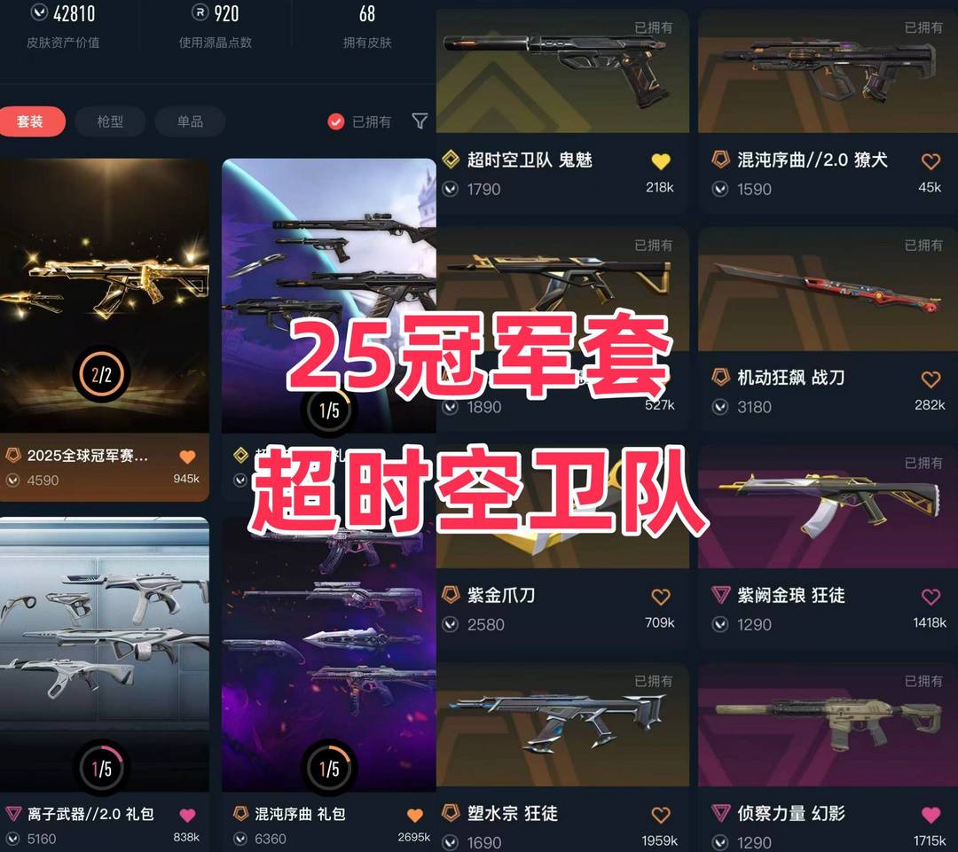 可排✅25冠军套✨超时空卫队鬼魅✨紫金爪刀✨塑水宗盖亚紫金混沌弃王狂徒✨奇点正义✨弃王冥狙✨破败戍卫