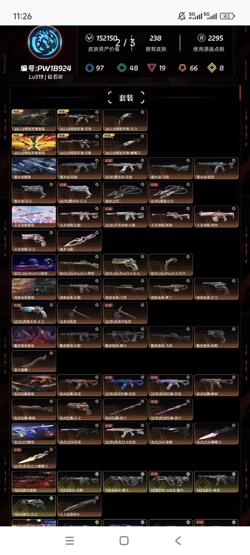 武器皮肤数量:238