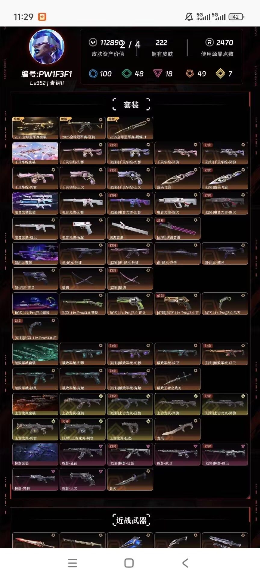 15w库存⚡25冠军套⚡莲花套⚡电音光谱套⚡创纪元套⚡RGX3.0套⚡大量t0狂徒