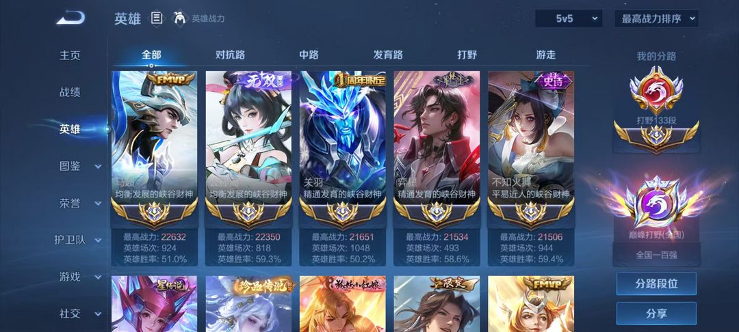 巅峰千强200名框⭐4月正式服在榜国服曜⭐133段国服打野⭐4大国分路⭐2w2十国服⭐可排位禁巅峰