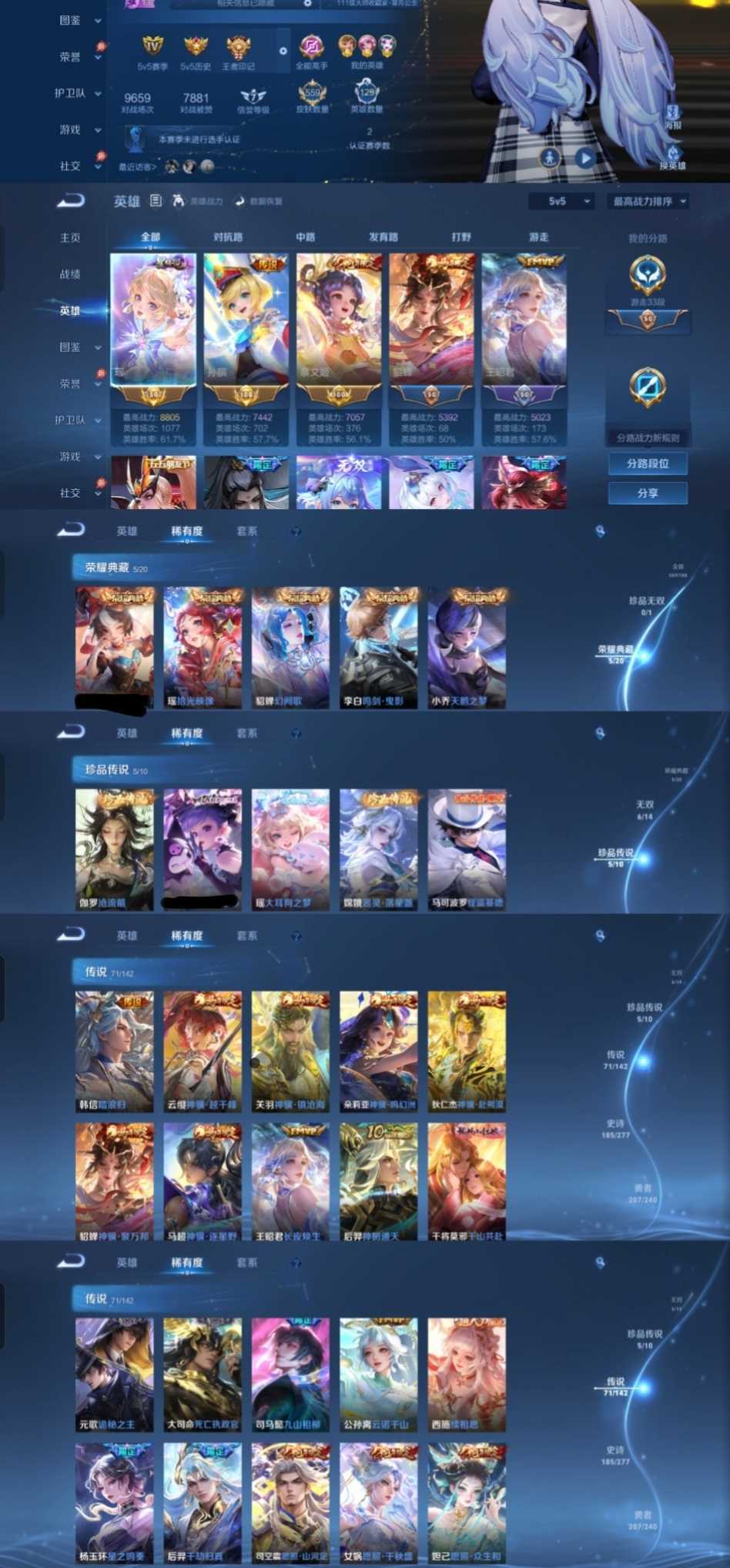 限制: 租号2次及以上 |装备描述:时间到了还登录白玩或者顶号全部改密拉黑处理永不解除,顶号机器会秒禁玩改密,顶号不仅拉黑还没得玩,赚三两块不容易,请理解谢谢。 ❤❤❤❤❤❤❤❤❤❤❤❤❤❤❤❤❤❤ 请勿开挂,挂机,送头,骂人,撤单后游戏等如有违规永久拉黑永不解除。 重置二级密码不要费劲了,号主每天都会上号查看,多行不义必自毙,人在做天在看,多做好事多自律,少做缺德事。 该号英雄129个皮肤570个,典藏6个,无双7个,珍品传说5个,星传说6个,传说71个,史诗185个,祝您游戏愉快~