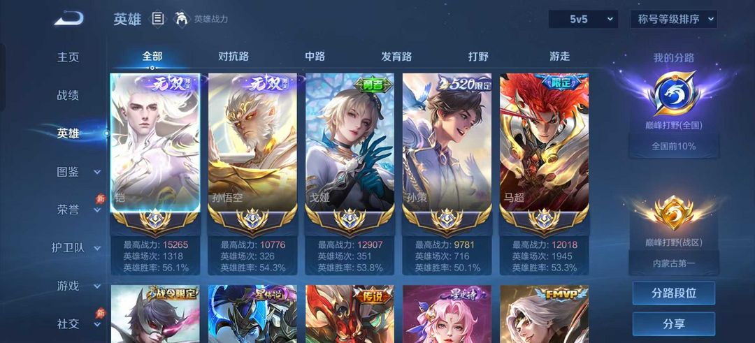 四月国服在榜最强猴子铠❤️无双限定⚡️历史国服马超孙策戈雅7255