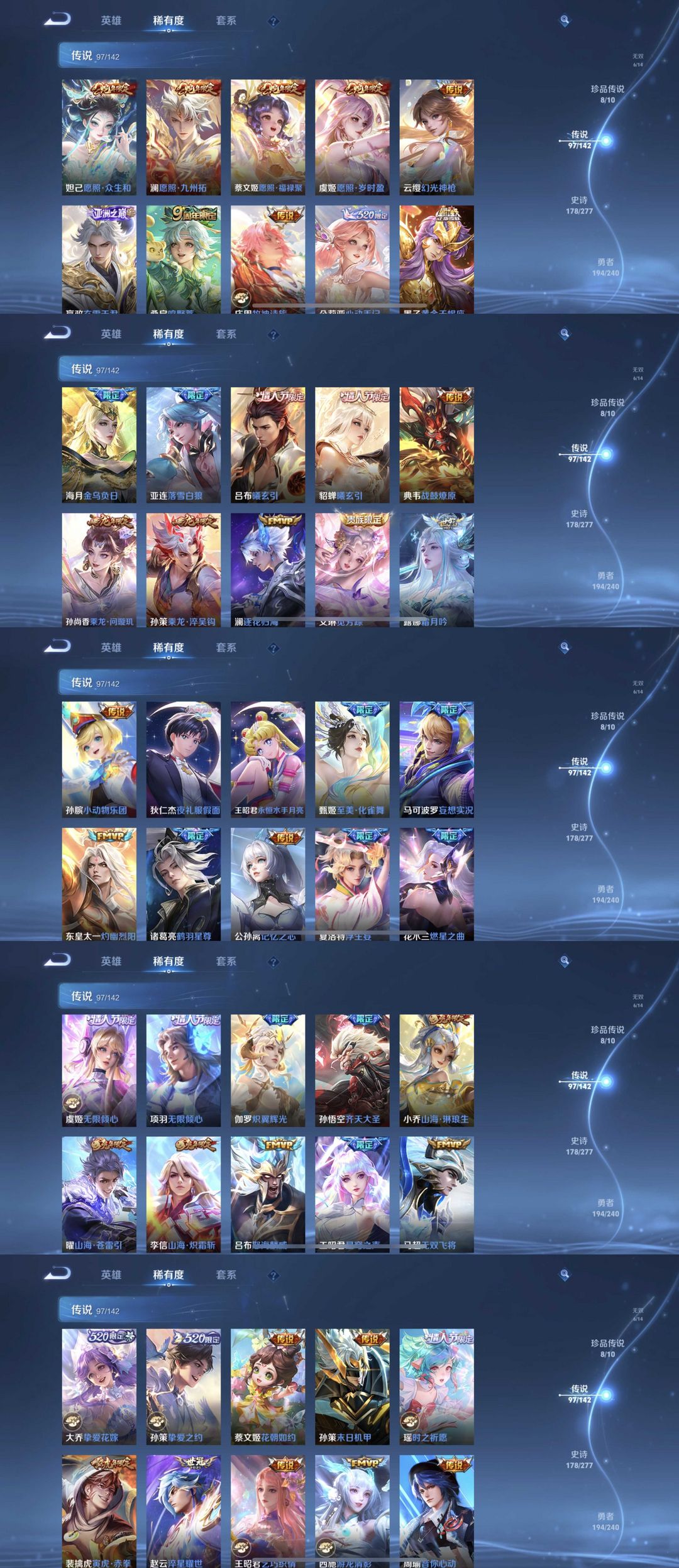 限制: 租号2次及以上 |装备描述:时间到了还登录白玩或者顶号全部改密拉黑处理永不解除,顶号机器会秒禁玩改密,顶号不仅拉黑还没得玩,赚三两块不容易,请理解谢谢。 ❤❤❤❤❤❤❤❤❤❤❤❤❤❤❤ 请勿开挂,挂机,送头,骂人,撤单后游戏等如有违规永久拉黑永不解除。 重置二级密码不要费劲了,号主每天都会上号查看,多行不义必自毙,人在做天在看,多做好事多自律,少做缺德事。 该号英雄130个皮肤583个,典藏21个,无双6个,珍品传说8个,星传说7个,传说97个,史诗178个,祝你游戏愉快~
