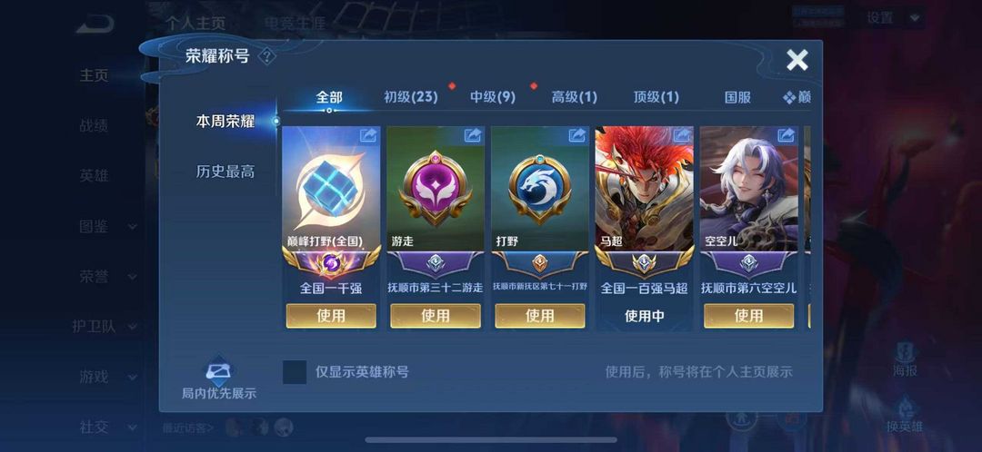 游戏区服:王者荣耀-QQ苹果-QQ账号 -手Q135区-掠影金秋