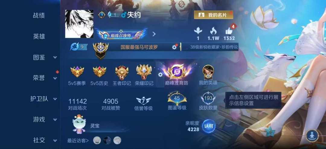 游戏区服:王者荣耀-QQ安卓-QQ账号 -手Q89区-奇迹幻视