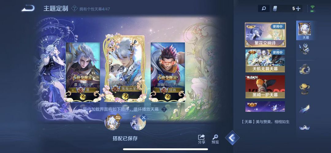 V10新皮号❤3水2无双2珍品463皮❤小国服貂蝉❤慕夏馥梦繁花天机白泽死神蛇年限定诡秘之主九山相柳
