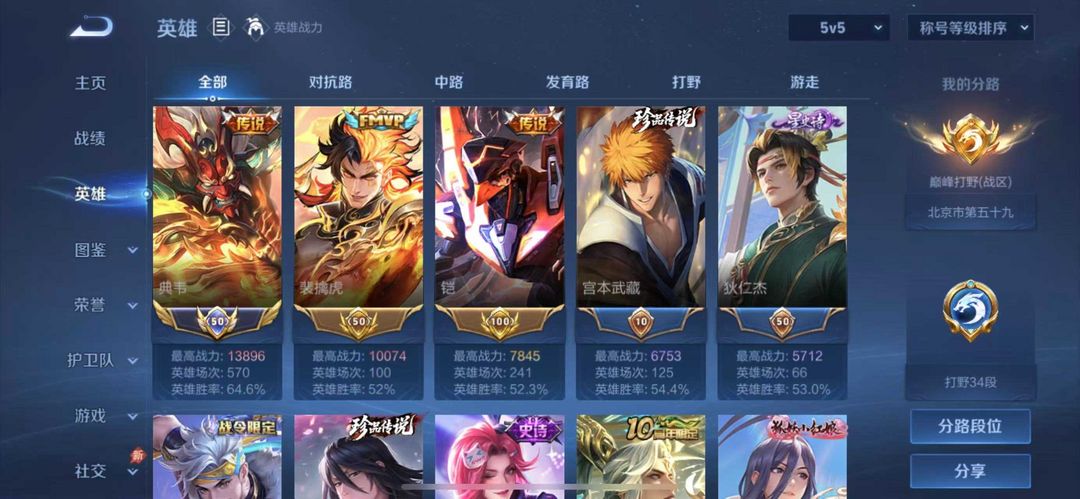 历史1.3w小国典韦⭐巅峰打野⭐万战金标老虎⭐带妹必备⭐信誉够可巅峰