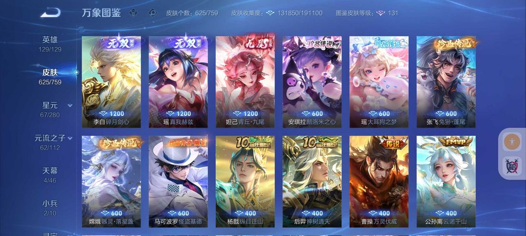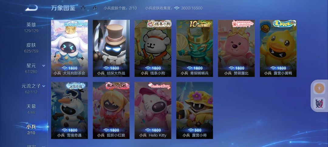625皮肤中路41段女号❤10水晶8无双全屏天幕❤大耳狗侦探小兵❤猴子无相无双凯神罪大耳狗库洛米96