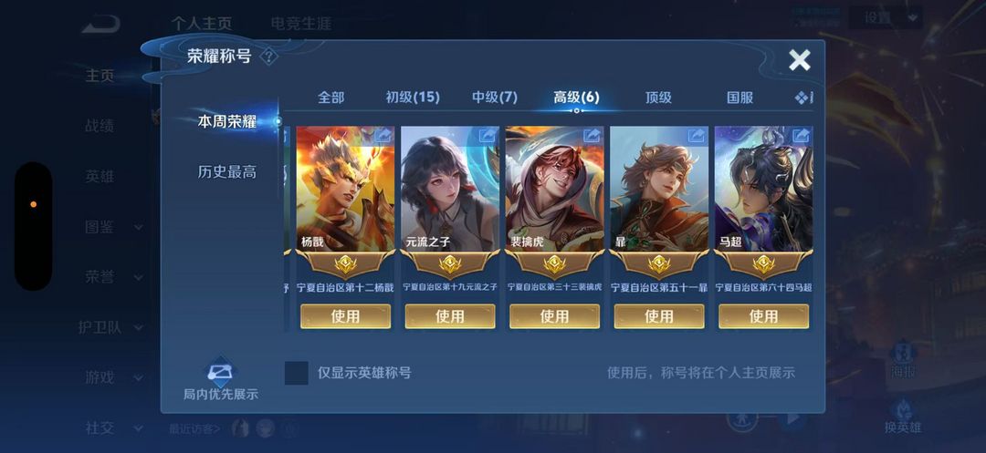 5省标杨戬元流坦裴擒虎马超在榜⭐贵族十⭐103段打野⭐巅峰⭐可排位/禁巅峰/禁挂机