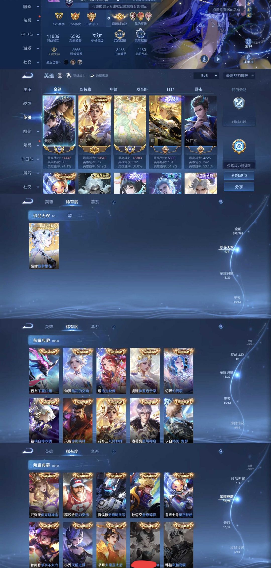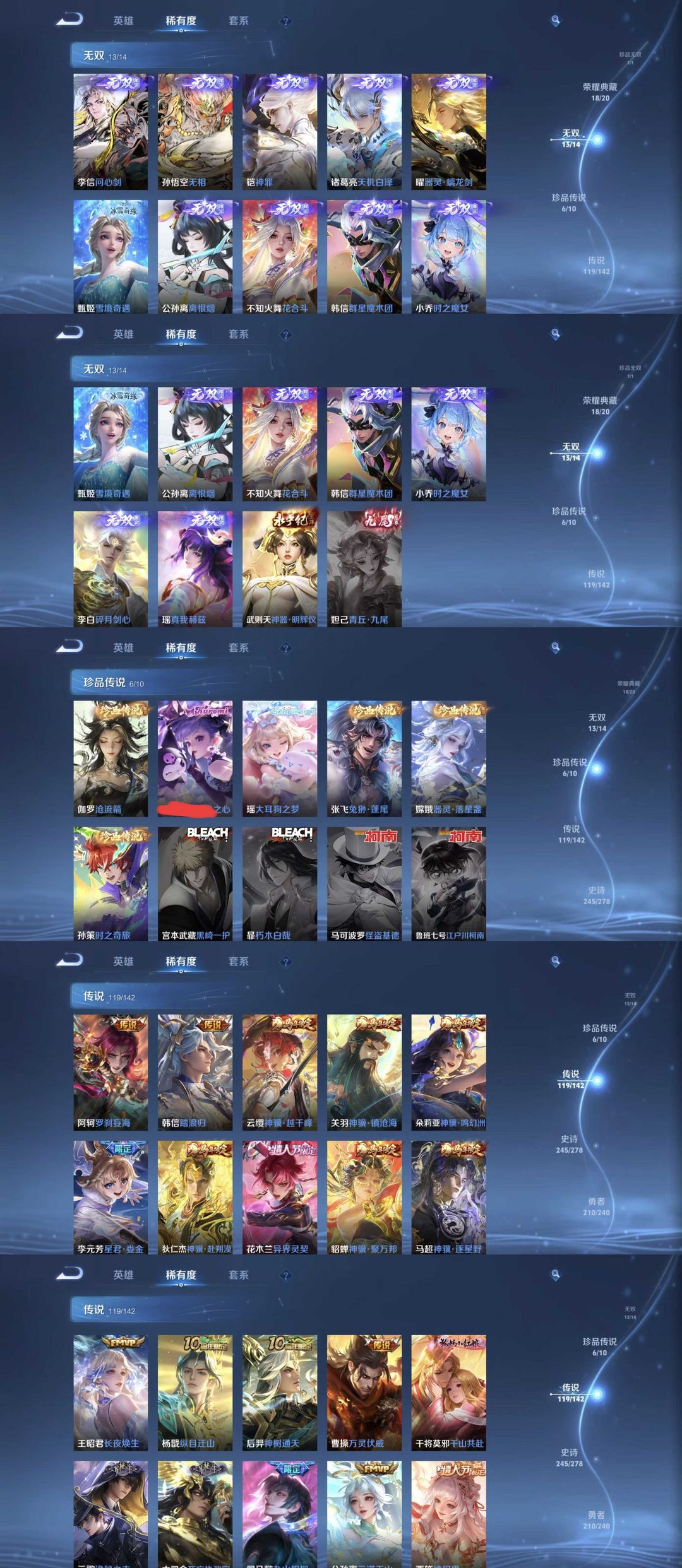 限制: 租号2次及以上 | 撤单率<49%才可租用此帐号装备描述:该号英雄130个皮肤693个,珍品无双1个,典藏19个,无双13个,珍品传说6个,星传说8个,传说119个,史诗245个,祝您游戏愉快~