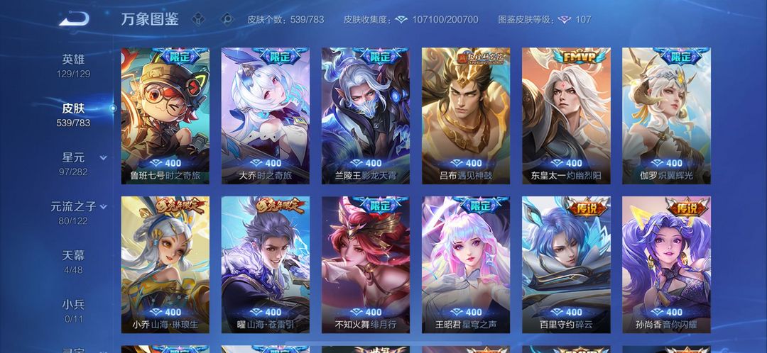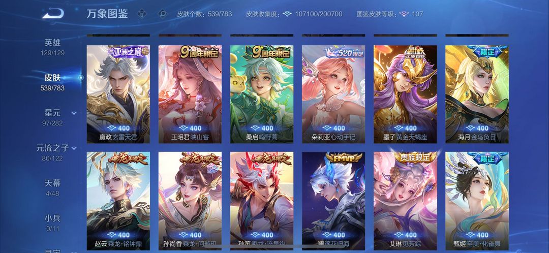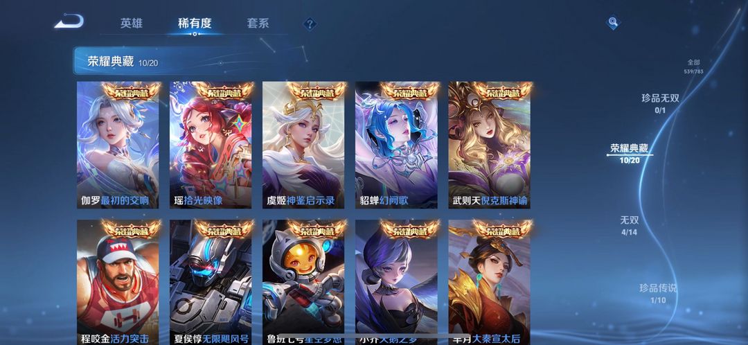 v10❤️538皮肤❤️11典藏❤️57传说❤️4无双❤️花合斗❤️星空梦想