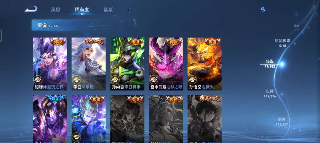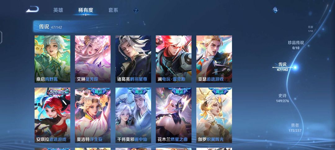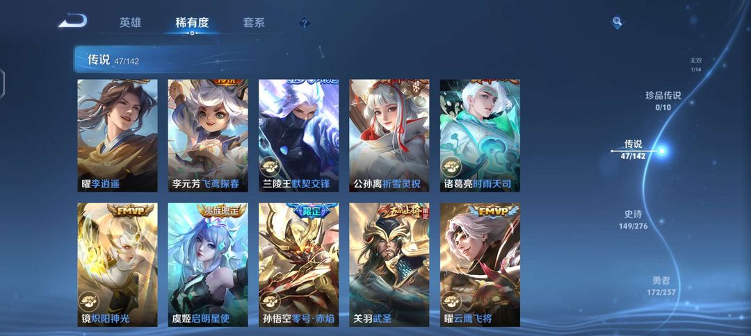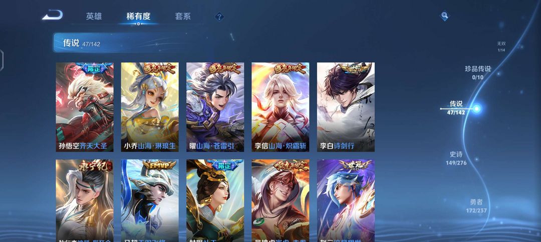 性价比超高*兔年全皮肤/历史4金标/4典藏/6星传说/李信问心剑/47传说