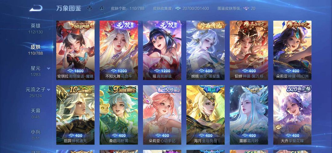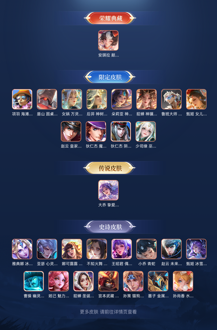 【V7❤️110皮】1典藏2无双10传说❤️不知火舞❤️瑶无双❤️嫦娥器灵❤️朵莉亚/貂蝉马年限定