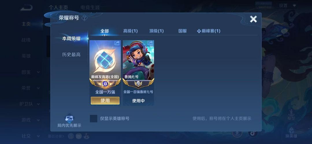 小国标鲁班在榜⭐巅峰⭐可排位/禁巅峰/禁挂机