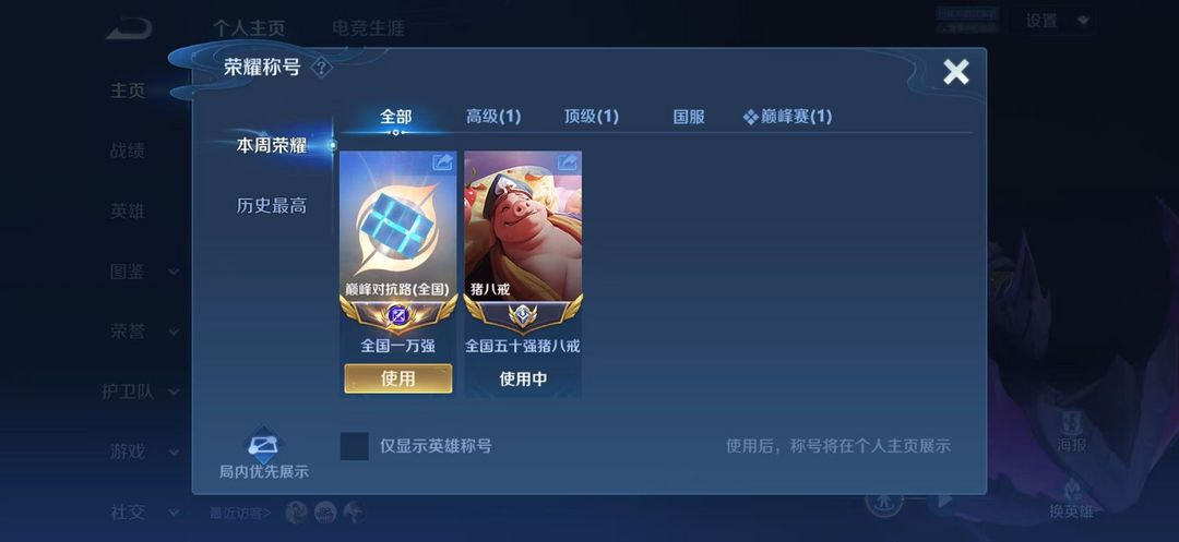 小国标猪八戒在榜⭐巅峰⭐可排位/禁巅峰/禁挂机
