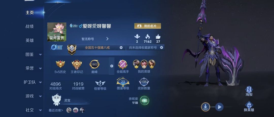 游戏区服:王者荣耀-QQ苹果-QQ账号 -手Q99区-死神怜悯