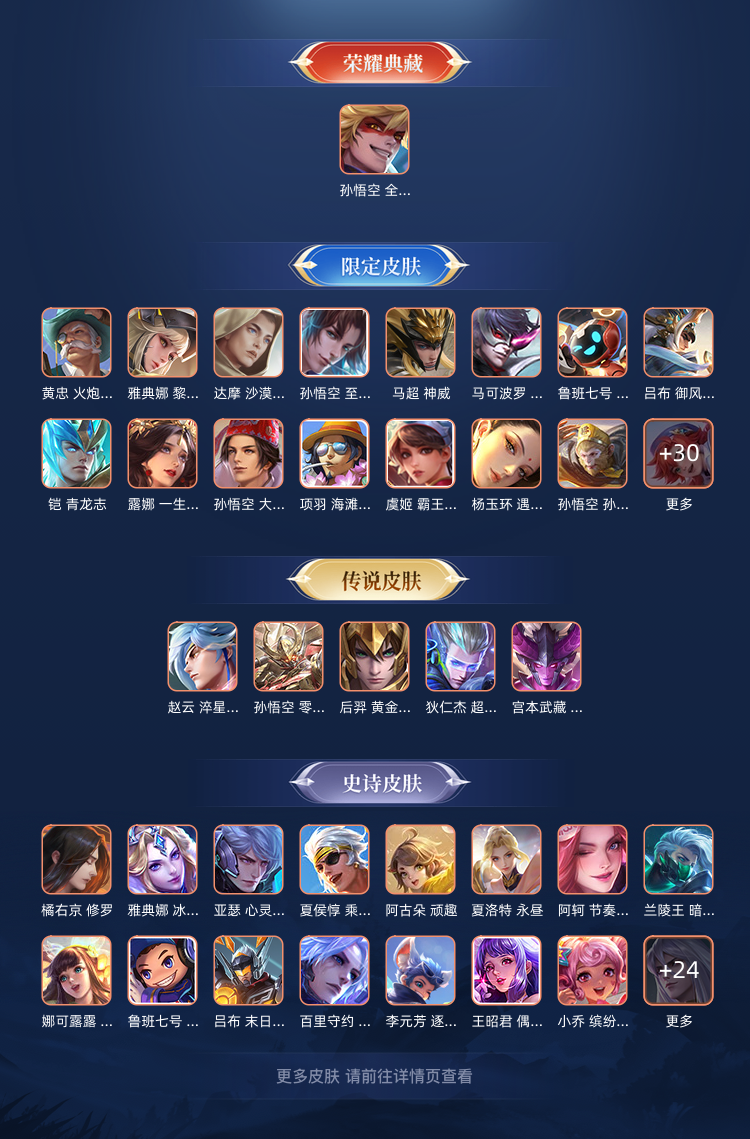 历史万战金标129个英雄皮肤344个孙悟空皮肤差美猴王和无双其它都有
