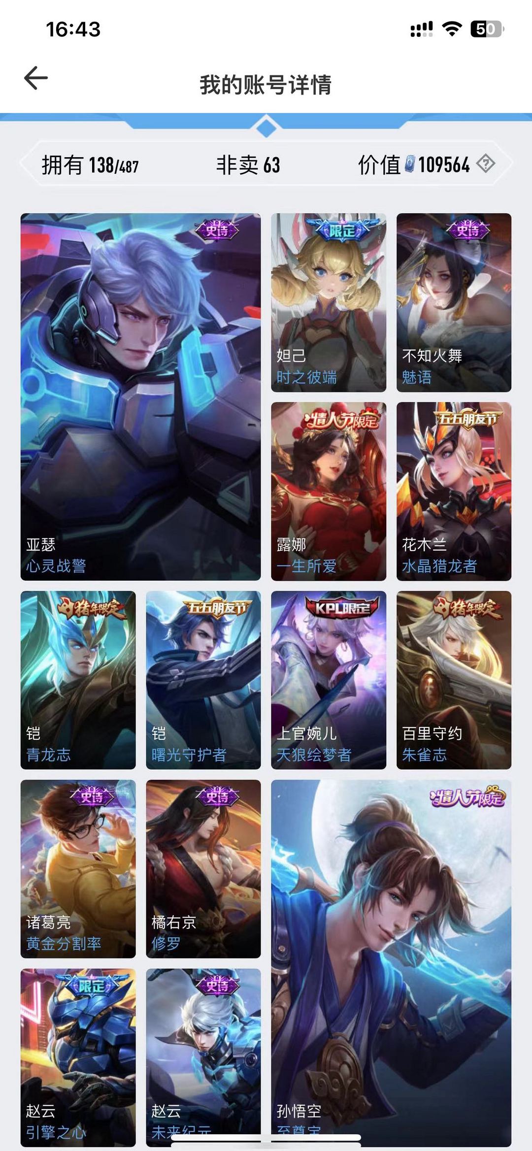 装备描述:贵8/140皮肤/神威/至尊宝/武陵仙君/云鹰飞将/凤求凰/白虎/朱雀/青龙/