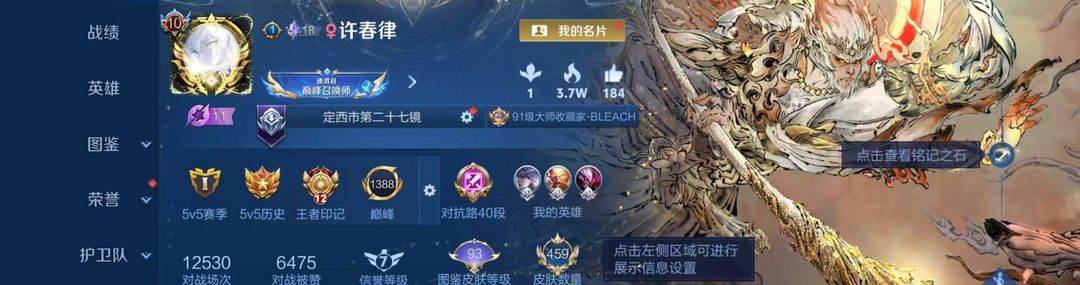 装备描述:毁号,涉及毁坏虚拟财产罪及计算机安全罪,请文明游戏素质游戏,让我们共建美好租号平台 本游戏账号: V10用户基础段位:至尊星耀III英雄多皮肤多。典藏皮肤3个感受典藏皮肤带来的优质体验快感FMVP皮肤7个尽情享受FMVP皮肤带来的主角光环 私人所属英雄皮肤有:铠 银白咏叹调夏侯惇 无限飓风号孙悟空 全息碎影貂蝉 曦玄引孙尚香 乘龙·问璇玑艾琳 觅芳踪王昭君 永恒水手月亮露娜 霜月吟狄仁杰 夜礼服假面云缨 鹤归松栖马可波罗 妄想实况澜 电玩·雷克斯张飞 百相守梦诸葛亮 鹤羽星尊安琪拉 追逃游戏亚瑟 追逃游戏妲己 青丘·九尾公孙离 记忆之芯夏洛特 浮生妄铠 绛天战甲百里守约 碎云孙策 末日机甲王昭君 乞巧织情李元芳 飞鸢探春蔡文姬 花朝如约干将莫邪 画中仙孙悟空 齐天大圣花木兰 燃星之曲曜 山海·苍雷引小乔 山海·琳琅生伽罗 炽翼辉光项羽 无限倾心虞姬 无限倾心李信 山海·炽霜斩李白 诗剑行梦奇 胖达荣荣李信 一念