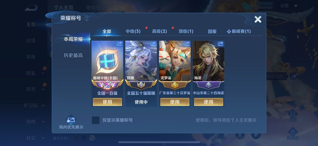 游戏区服:王者荣耀-QQ苹果-QQ账号 -手Q135区-掠影金秋