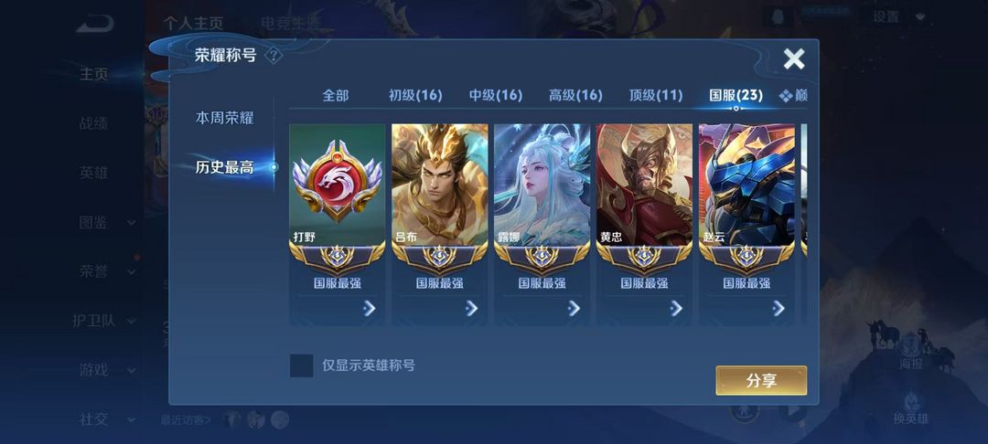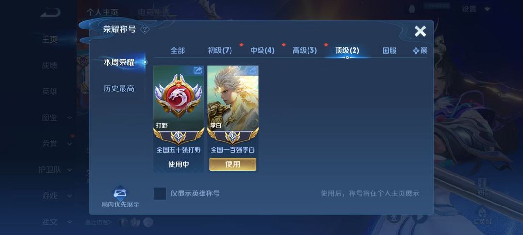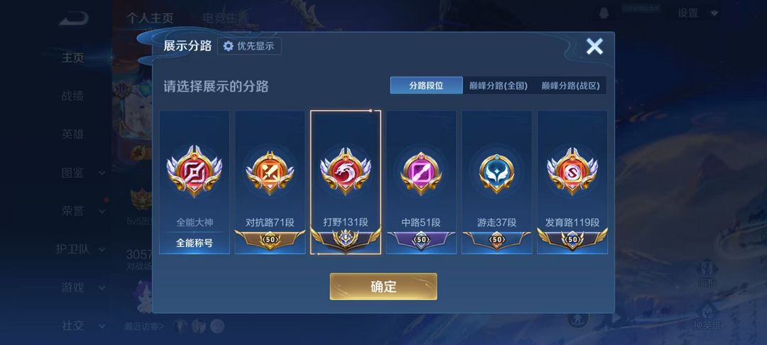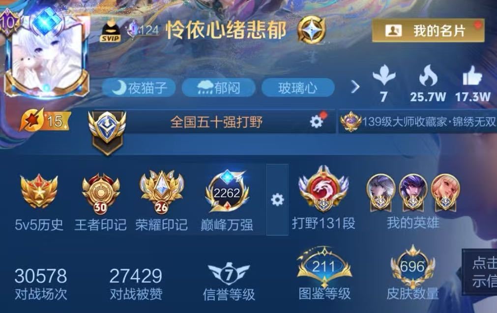 3月正式服在榜小国标李白⭐131段23国服打野⭐119段发育路⭐巅峰万强框⭐v10贵族⭐可排位禁巅峰