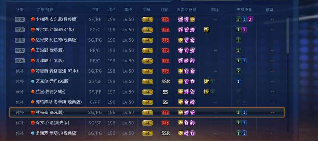 装备描述:UR甜瓜UR87魔一堆UR配菜SSR96满羁绊乔丹,自建全10带包