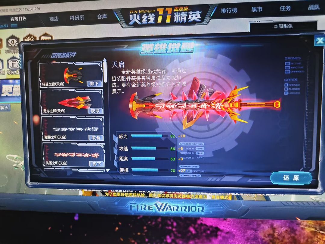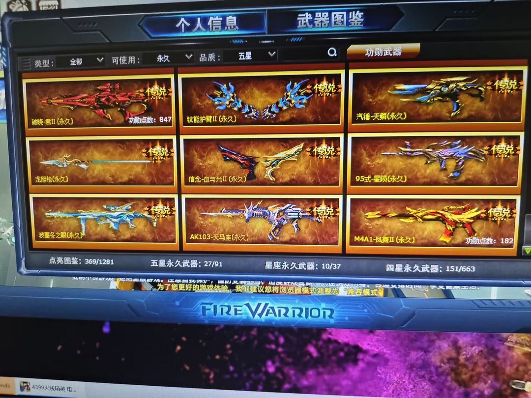 装备描述:28五星至尊帝王,维罗尼,三把镰刀,魔剑,双镰,天麟3等,气爽,洋枪,赵云,(怀旧无敌)男亚瑟,飞行套,掠食者,天启满配,巨蟹1,射手1