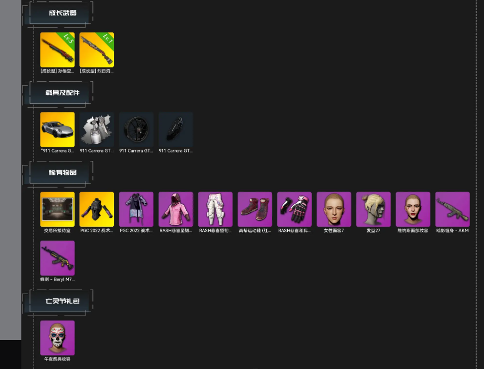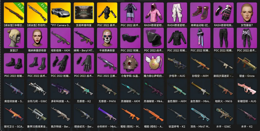 保时捷跑车豪华版√5级悟空M24√丸子头√悲喜套√红面巾√烈日灼烧√发光手臂√蛇蝎美人