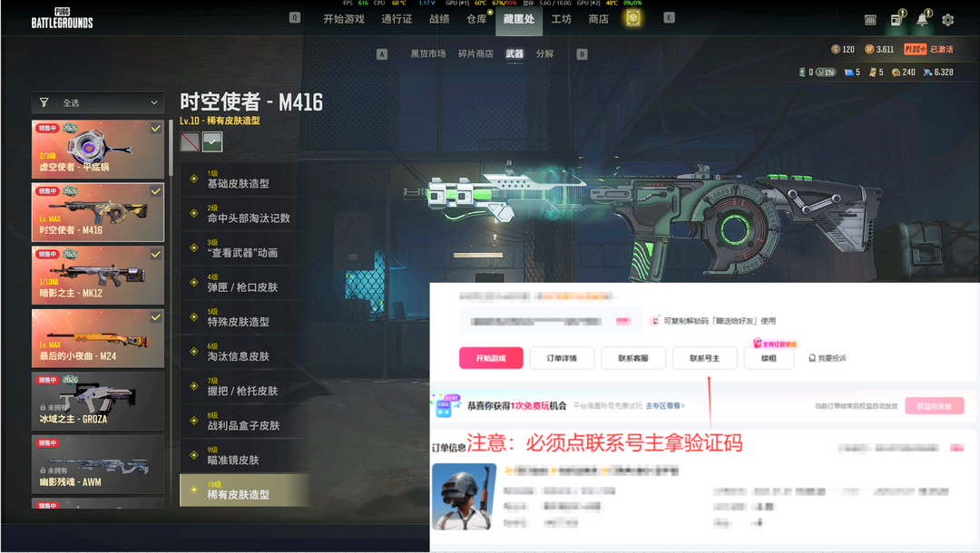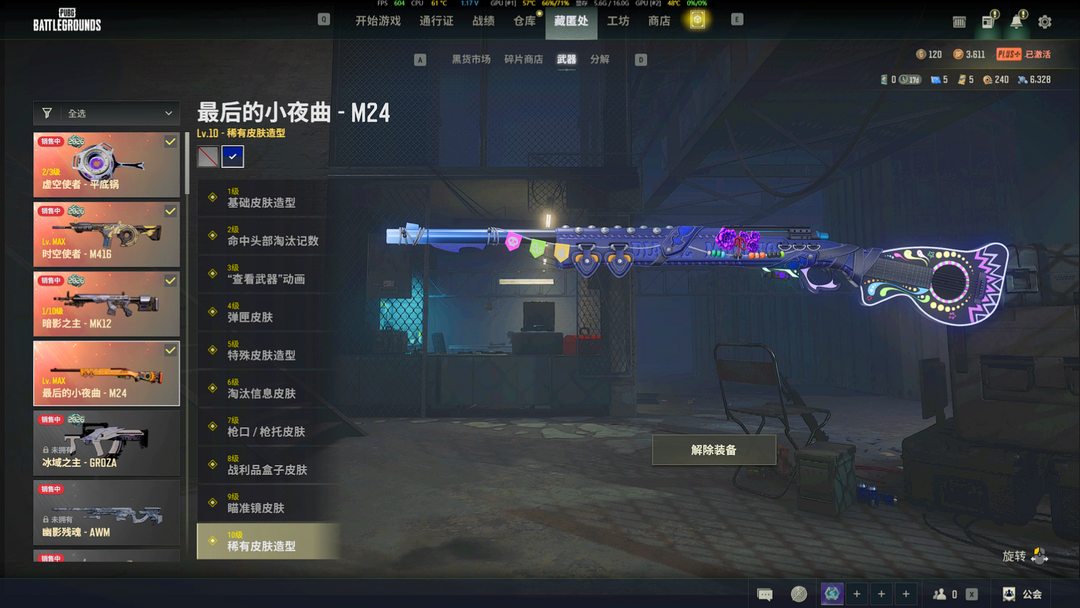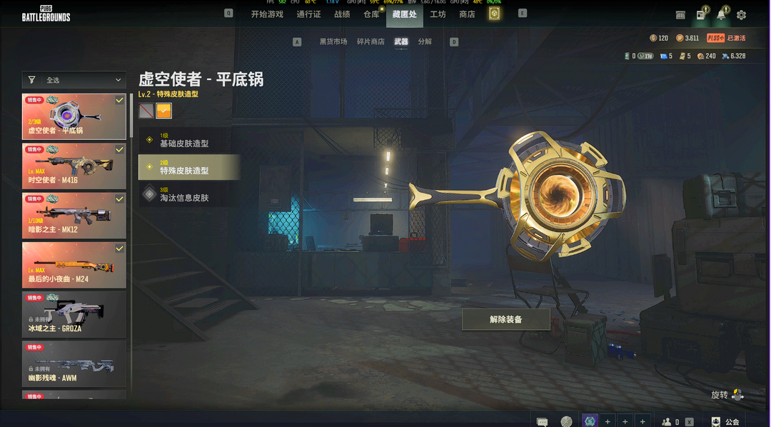 ⭐布加迪⑩异色时空使者-M416⑩异色最后的小夜曲-M24①暗影之主-MK12②异色虚空使者-平底锅