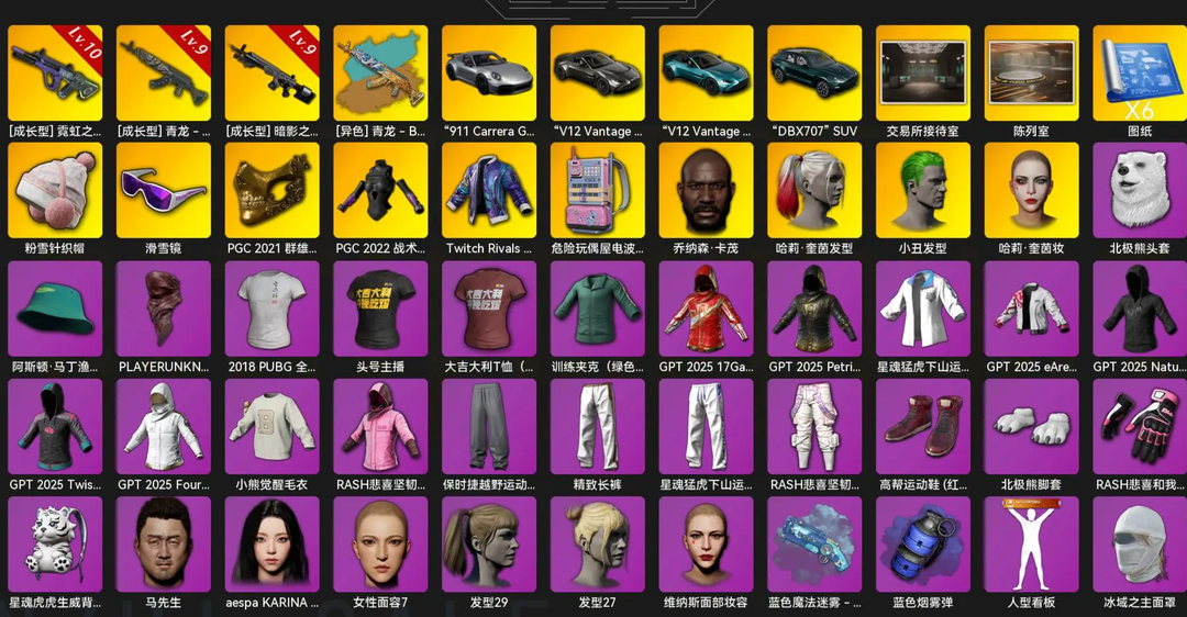 ⭐⑩暗影之主MK12⑩异色青龙762⑩霓虹之梦-AUG带保时捷阿斯顿马丁跑车小丑头星魂白黑鬼