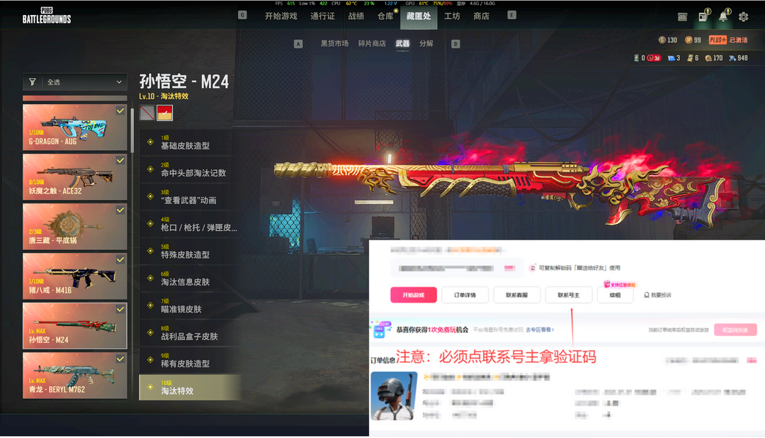 ⭐⑩异色孙悟空M24⑩异色青龙762⑧异色妖魔之触-ACE32⑦暗影之主-MK12②唐三藏-平底锅
