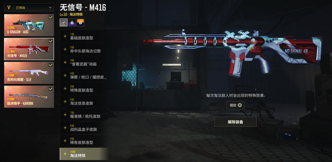 ⑩级无信号M4✅③权志龙AUG寒蚀MP5K猛虎98k玩偶大炮✅毒液762✅白运动白战神小战神悲喜柏林