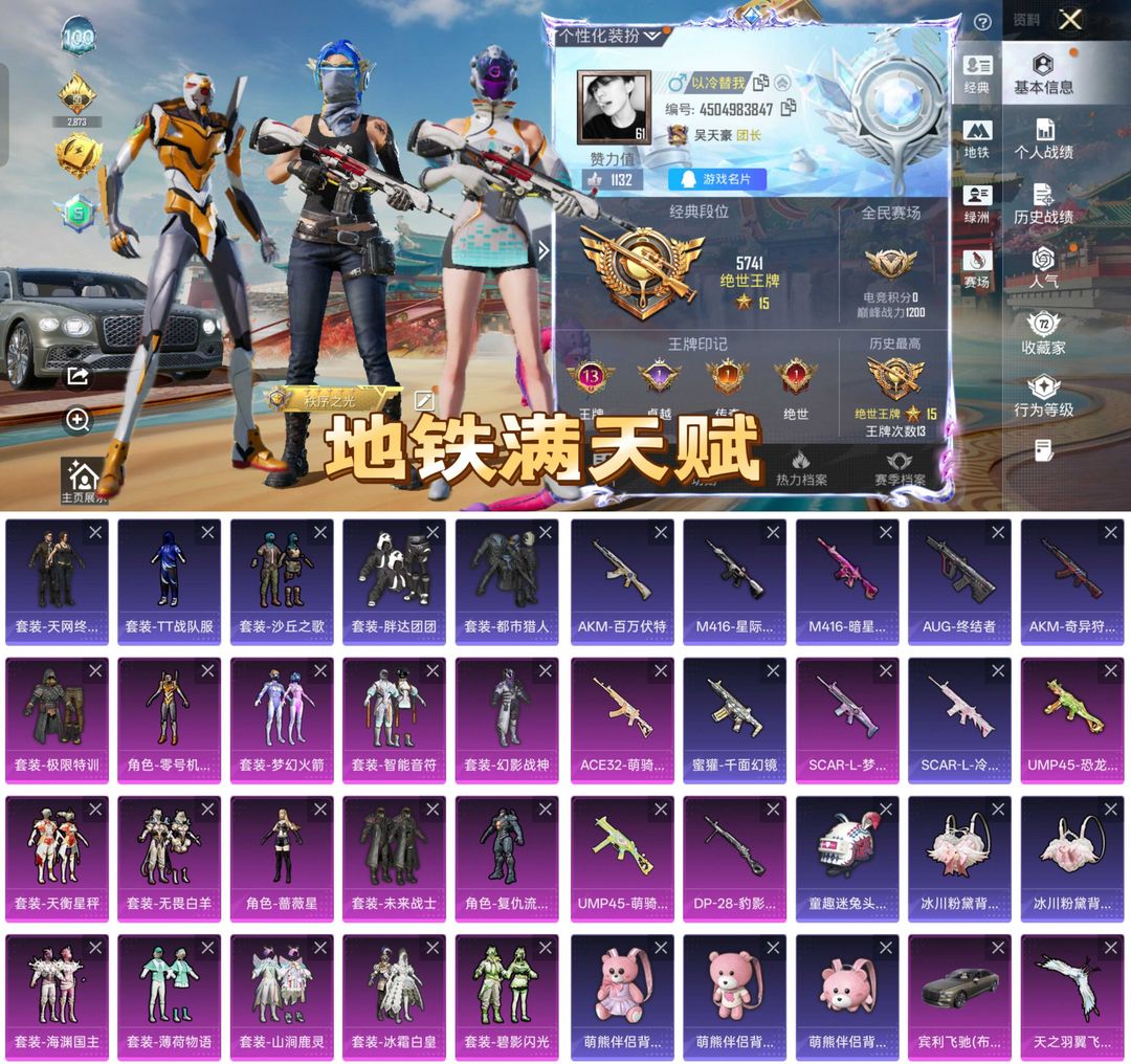 地铁满天赋/素材号/天网终结者/星际m4/黄螳螂/都市猎人/智能音符/极限特训/满级火箭/小熊背包