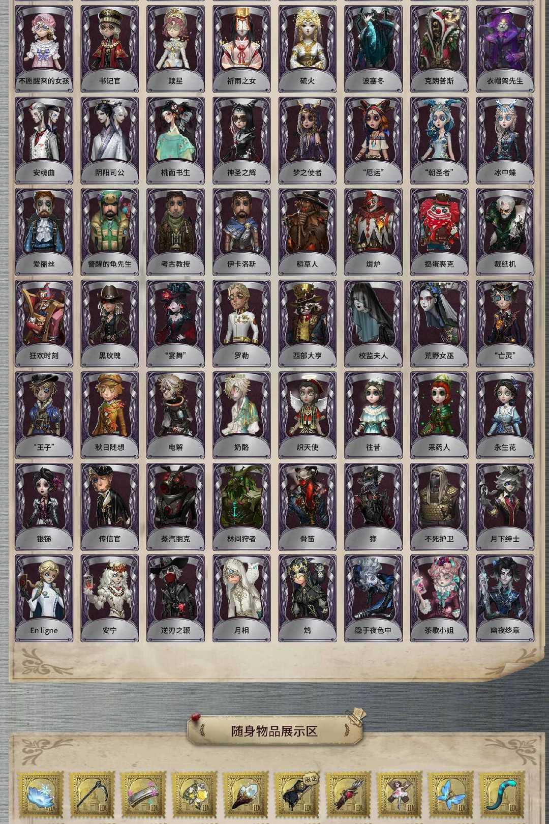 装备描述:摩涅莫绪涅之梦 希望的残像 精致的笑容 司药 翦烛 不屈的信仰 当铺老板 溯光 石榴碟小姐 招风旗 猎物的印记 墨菲斯的门廊 未至之人 赤松枫 花序 垂泪的神女 拉塔托斯克 流萤 浴火绯花 幽灵公主 柴郡猫 盛宴伯爵 忘川渡人 夜来香 尼德霍格 不会枯萎的花 女武神 西尔菲德 花祭 玛利亚公理 胧夜 盛夏光影 变彩 椰香假日 贝拉夫人 夜潮 耶梦加得 幽浮灵 “鬼烛” 缚愿 瑶彩 长夜 欧律狄刻 幽灵帆 克拉肯 片刻闲暇 推理先生 奥村春 佐仓双叶 芳泽霞 VIOLET 熊猫保育员 秘密大厨 咫尺微光 金 人偶师 恶之花 教鞭 嬉命人 撒玛拉 红菱艳 克拉拉 朱丽叶 桃乐丝 丰悦 “未知射线”X 林中骑士 爱神之吻 糖果少女 时之猎手 海女巫 异星 晨昏之隙 猩红新娘 牛仔-船影 最后的荣光 “裁缝夫人” 灰烬狂想 雪原猎人 逐浪的玫瑰 潘塔龙 多加雷萨 壁画修复员 善忘的海马体 多色印刷 浴石商人 收藏品 溃夜猎者 苗木诚 罪木蜜柑 雾切响子 七海千秋 王马小吉 江之岛盾子 天海兰太郎 入间美兔 最原终一 毛利小五郎 赤井秀一 冬 更纱 “盲区” 应许之日 毕业日 可妮兔 Buffy 正位审判 填海平 乔苓 竹荫守护者 滚滚伙伴 梶井基次郎 江户川乱步 提炼师 Lady K 葛雷 凯瑟琳·沃德 瑞吉儿·加德纳 星航之旅 源自星辰 奇趣美乐蒂 末世搜救 摩诺 蛋小黄的好朋友 弦音畸变 “伊始新篇” 警戒哨台 雷斯垂德探长 华生医生 伊布 陶梦嫣 赞因 菲伦 掌中篆记 “巡于归途” 兔爷 暹罗厘普 不死护卫 稻草人 焗炉 捣蛋裘克 炽天使 往昔 采药人 永生花 银锑 传信官 蒸汽朋克 林间狩者 白胡子 爱丽丝 警醒的龟先生 考古教授 伊卡洛斯 弹簧手 思明 白鹰之舞 黑天鹅之羽 “苏珊娜” Re-Swim 流离的月光 “巫云” 慵懒的兔先生 水球救生 长腿小姐 窥伺之心 墨卡托投影 聚光灯下 不愿醒来的女孩 书记官 赎星 祈雨之女 硫火 波塞冬 克朗普斯 衣帽架先生 安魂曲 阴阳司公 桃面书生 神圣之辉 梦之使者 “厄运” “朝圣者” 冰中蝶 逆刃之鞭 月下绅士 En ligne 安宁 月相 鸩 红龙夫人 缄默者 “向导” 噩之牙 噬恶之渊 被时间遗忘的男孩 伊万 骨笛 狰 鼹鼠先生 雀舌 迷途诗人 妄念的陈伤 青须的公爵 ACE 罗勒 黑玫瑰 “宴舞” 西部大亨 “亡灵” “王子” 秋日随想 校监夫人 荒野女巫 奶酪 电解 黑女巫 曼陀罗 “玛利亚” 球球 逃亡者 裁纸机 狂欢时刻 钨 天使向导 迷迭香 审判之翎 年岁 淋浴 大师牌 灵蛇 熄灭的太阳 黑鸦 墨韵 飞行家-异相睡眠 KNIGHT-c3 幕外之音 拂晓女士 BISHOP-f1 辉锑矿 行于界限间 “有机磷” 茶歇小姐 隐于夜色中 幽夜终章